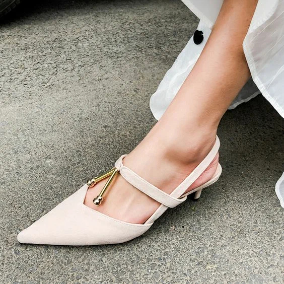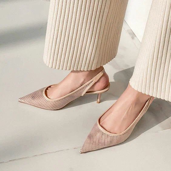 Почнемо з жіночності та елегантності, під цей опис найкраще підходять гостроносі слінгбеки на невеликому підборі та з тонкою перемичкою. Вибирайте нейтральні нюдові відтінки у взутті, вони дозволять вам без особливих проблем комбінувати його з різними вбраннями та аксесуарами.