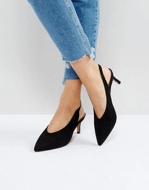 Класичні замшеві слінгбеки з витонченим декольте в чорному кольорі – бездоганна база на кожен день і не тільки.