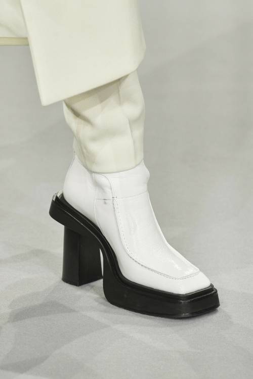 Біле взуття на контрастній чорній підошві з високим важким каблуком також входить в список трендів нинішнього сезону.