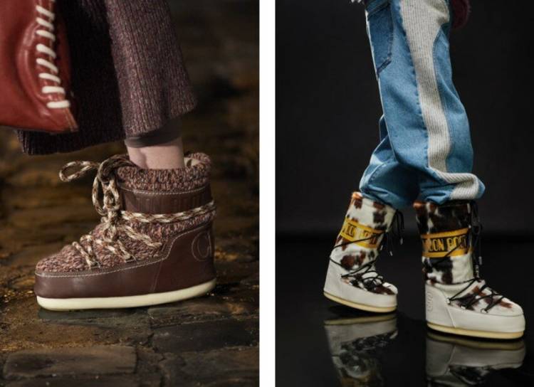 Місяцеходи – ми сподіваємося, що ви ще не забули про існування цього незвичайного і максимально теплого взуття? Подбайте про те, щоб в наступному сезоні у вашій колекції взуття неодмінно були присутні місяцеходи, як укороченої, так і подовженої моделі. В’язані, лаковані, кольорові і анімалістичні вставки також в пріоритеті.