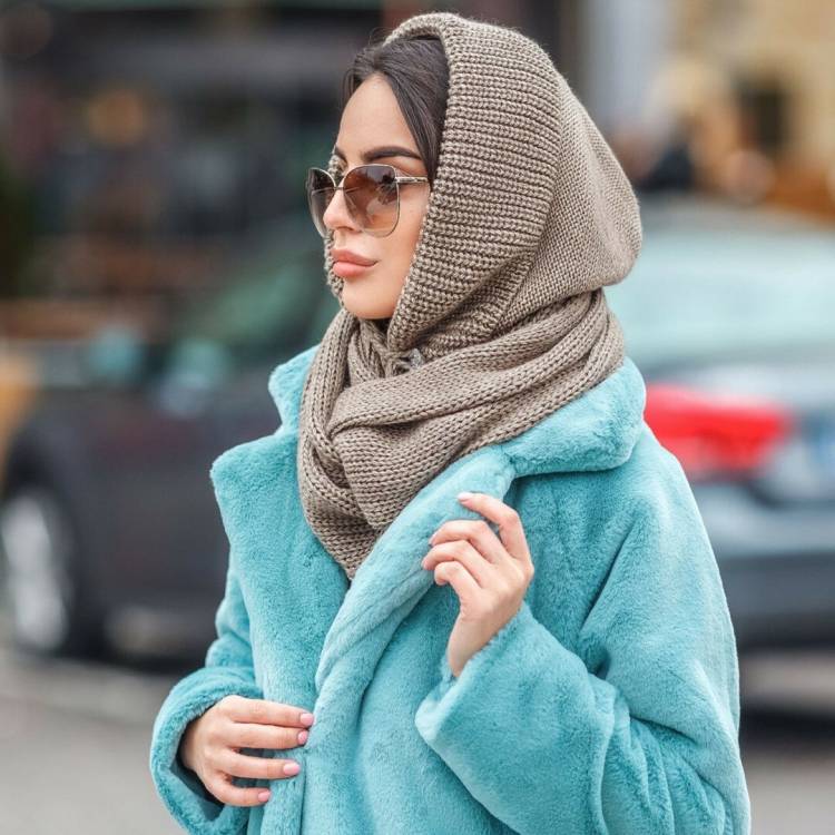 У категорії головні убори 2021 не втрачає свою актуальність снуд – модель 2-в-1, що представляє собою відразу і шарф, і шапку. Велика в’язка виглядає оригінально і по-домашньому затишно.