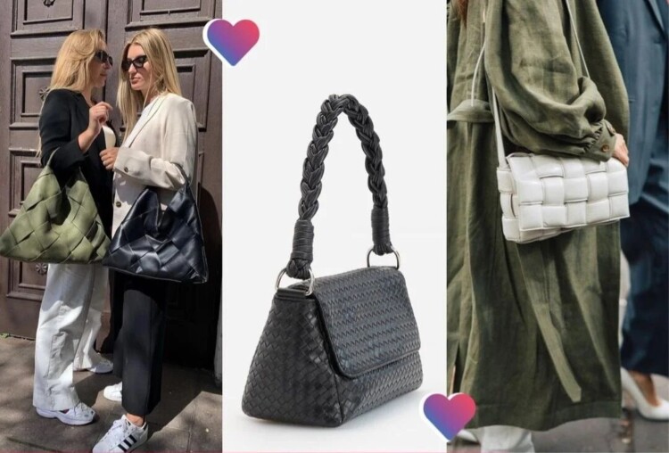 Плетені сумки залишаються в тренді не перший сезон. І теж поступово видозмінюються і оновлюються. Актуально як середнє, так і дрібне, і велике плетіння. Особливо добре такі фактурні сумки виглядають в компанії мінімалістичних нарядів і з однотонними речами.