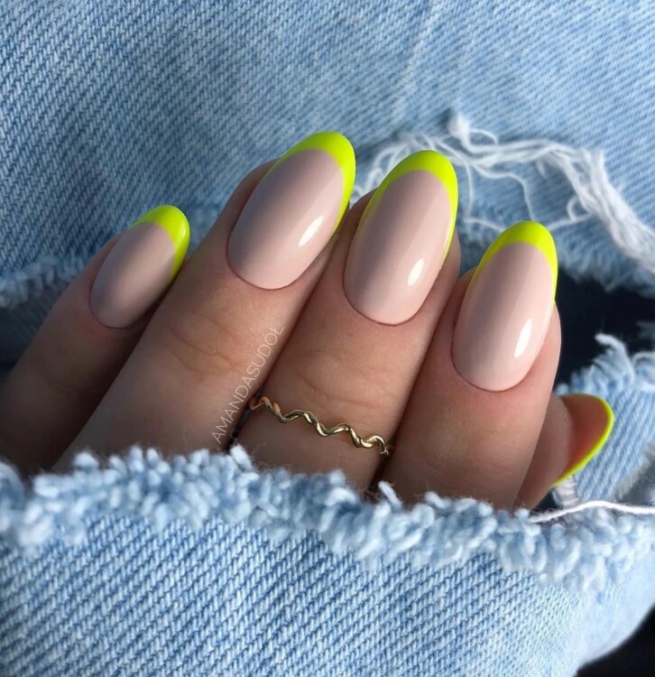 Неоновий французький манікюр відмінна ідея для літнього сезону. Даний дизайн відмінно підійде, як для коротких, так і для більш довгих нігтів. Сучасні гуру моди радять вибирати для свого літнього манікюру яскраві неонові відтінки, які зроблять виразним і привабливим загар шкіри.
