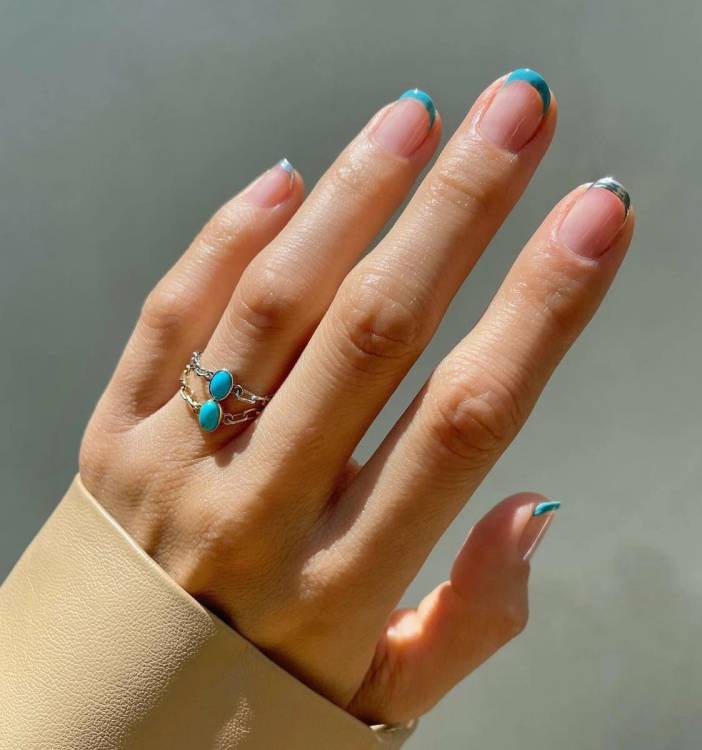 Мабуть, більш відомий відтінок у світі не знайти. Колір Tiffany (це до речі, його офіційна назва, зареєстрована в інституті кольору Pantone) у манікюрі пережив нову хвилю популярності, а завдяки Хейлі Бібер. Модель не здає позицій головного інфлюєнсера у світі манікюру і продовжує ставити тренди. Після того, як Хейлі прийшла на вечірку Tiffany&Co з манікюром у їхньому фірмовому відтінку, повторити простий та ефектний дизайн вирішили мільйони модниць по всьому світу. Цей відтінок чудово виглядатиме в однотонному покритті як на коротких, так і на довгих нігтях. Втім, якщо такий манікюр здається вам надто нудним, нічого не заважає використовувати відтінок Tiffany в дизайні. Особливо чудово він підійде для кольорового френча – одного з наймодніших дизайнів літа. Ну а більше ідей уже чекають на вас у галереї нижче.
