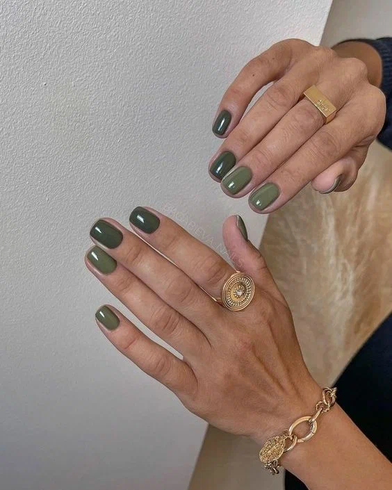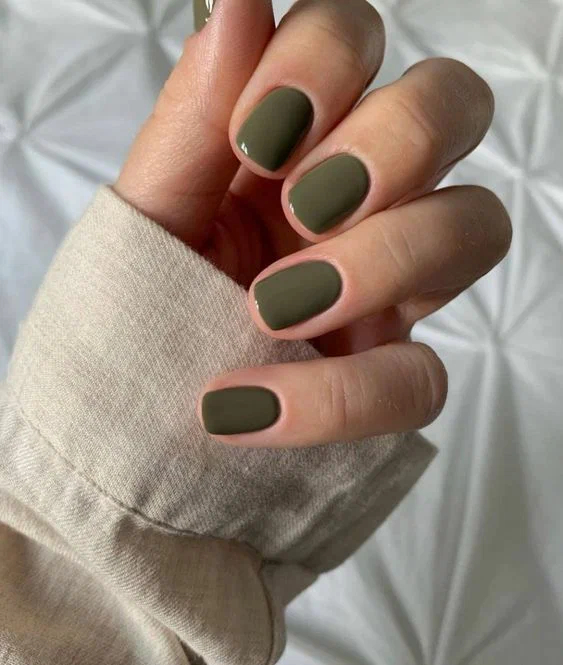 Оливковий відтінок манікюру ідеально підходить для нігтів середньої та короткої довжини та чудово виглядає з будь-якою формою нігтьової пластини.