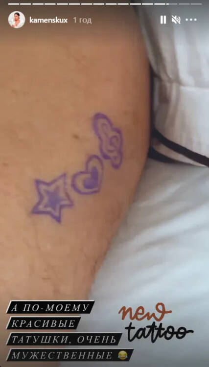 Так, артистка намалювала кульковою ручкою на плечі свого коханого зірочку, серце і ноту. Каменських пожартувала над Потапом за те, що він пізно встає вранці, поки вона встигає зробити всі справи по дому і позайматися спортом. Відповідне відео зірка опублікувала у своїх Instagram-сторіз.