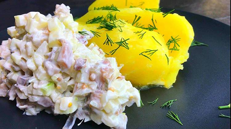Для закуски буде потрібно оселедець, дуже важливо щоб він був слабосолоний і жирний. Від цього сильно залежатиме смак закуски.