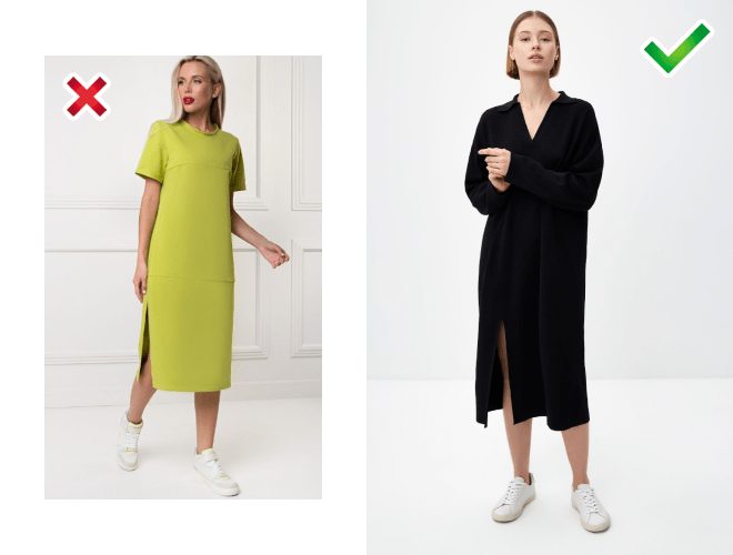 Сукні у спортивній стилістиці зараз на хайпі. Але це не означає, що сукня-футболка, що облягає, піднесе вас на вершину моди. Якщо хочеться пограти з трендом, то побалуйте себе прямою сукнею з коміром поло. Воно підкреслить ваше відчуття стилю.