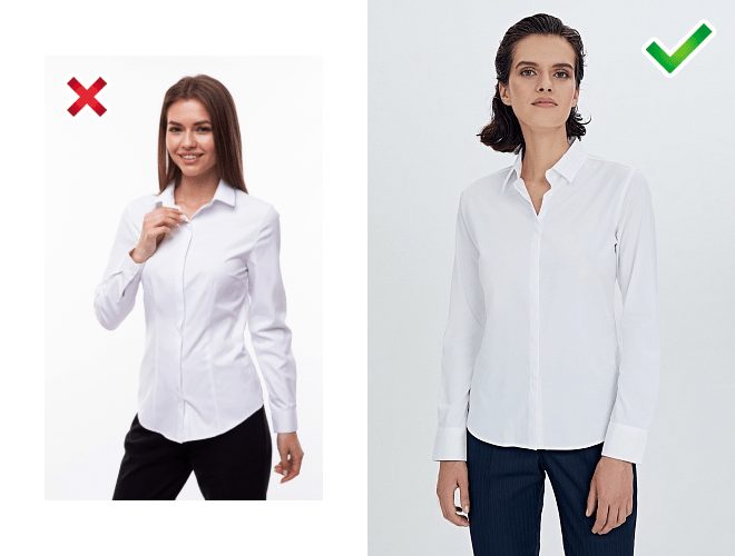 Коротка приталена біла сорочка – найпростіший спосіб зіпсувати враження про себе. Так, ви можете носити модель по фігурі, але простежте, щоб між вами та одягом залишалося кілька вільних сантиметрів.