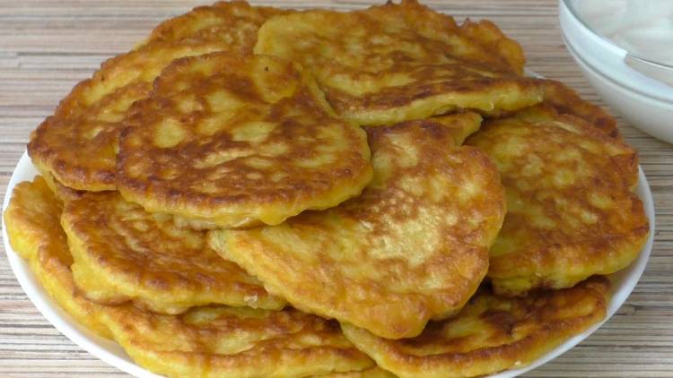 Гарбузові оладки готові, вони просмажені та ніжні всередині. Подавати їх можна зі сметаною, медом, джемом чи варенням.