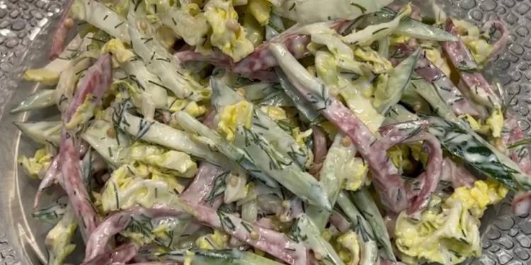 Свіжість цього салату, приготовленого з пекінської капусти, точно сподобається вашим рідним та гостям. Він дуже соковитий і неймовірно смачний.