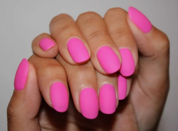 • Однотонний неон. Класичний варіант – покриття всіх нігтів лаком одного неонового відтінку. У моді насичений жовтий, отруйний рожевий, соковитий салатний, яскравий блакитний, колір фуксії і навіть апельсина. Вибирайте будь-який з них, і ваші нігті привернуть до себе, а, значить, і до вас загальну увагу.