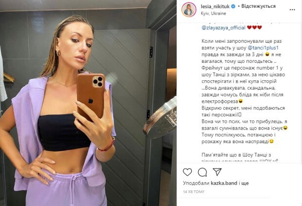 Відома телеведуча, завжди влучна, яскрава та смішна Леся Нікітюк у своєму інстаграмі поділилася новиною про те, що їй запропонували знову вийти на паркет шоу “Танці з зірками”. Цього разу зірка танцюватиме в парі з Ольгою Фреймут.
