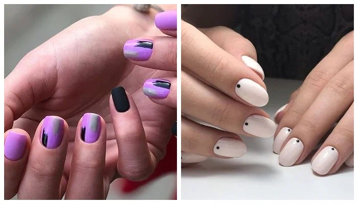Ніжний і романтичний, колір, який підкорив серця багатьох модниць різного вікового діапазону – це розкішний лавандовий. Цей багатогранний відтінок популярний у вбраннях, макіяжі, фарбуванні, аксесуарах, а зараз і в манікюрі. Перший варіант манікюру включає відразу кілька лавандових відтінків, які гармонійно перегукуються між собою.