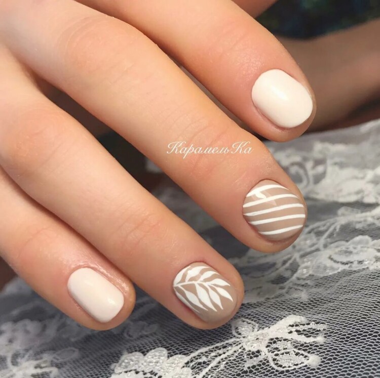 На коротких нігтях дуже часто використовують техніку негативного простору. По-перше, це дозволить візуально подовжити нігті, а по-друге, дизайн буде лаконічним і строгим. У прозору частину нігтя можна додати візерунки, гілочки, смужки, а іншу частину оформити однотонним відтінком.