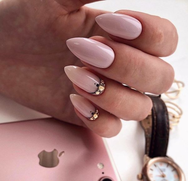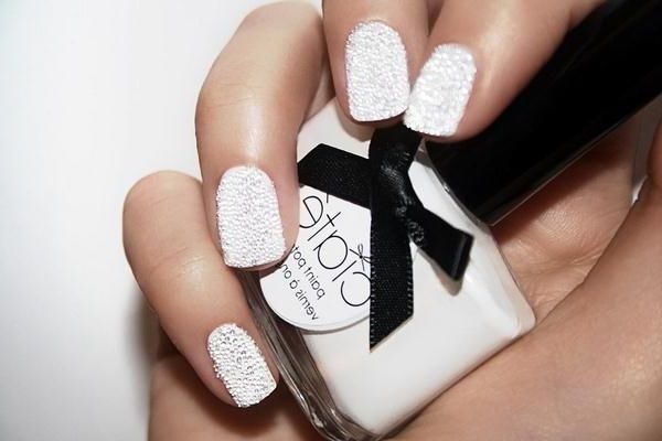 Техніка декорування нігтів полягає у використанні дрібних бусинок типу бісеру. На пастельних тонах лаку така прикраса виглядає елегантно, виразно, гарно.