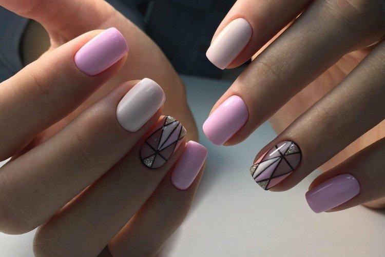 Акцентні нігті вже дуже давно увійшли до нашого життя. Навіть яскраві кольорові або чорні лінії та візерунки не зіпсують загальне відчуття легкості, якщо підібрати гарне нейтральне тло.