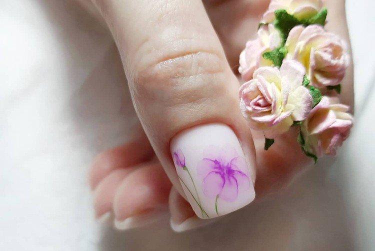 Звичайно, вибірка ніжних манікюрів не обійдеться без рослинних мотивів. Тут діє вже знайоме правило: чим дрібніший візерунок – тим краще. А якщо все-таки хочеться велику квітку, залиш її для одного акцентного нігтя і вибери нейтральну і не надто яскраву колірну гаму.