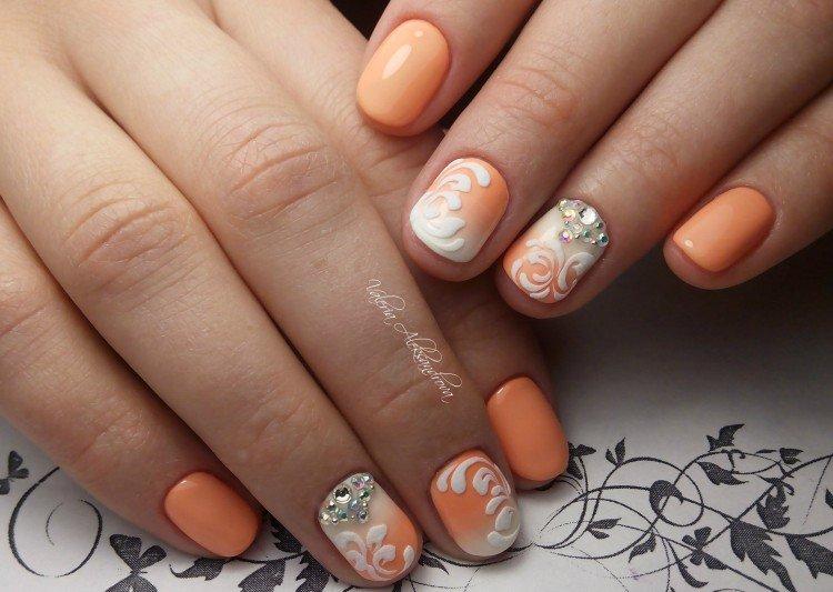 Теплі персикові кольори багатогранні – десь між бежевим, рожевим та помаранчевим. Такий манікюр на коротких нігтях виходить природним і нейтральним, але водночас яскравим.