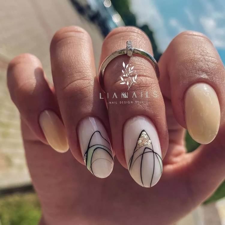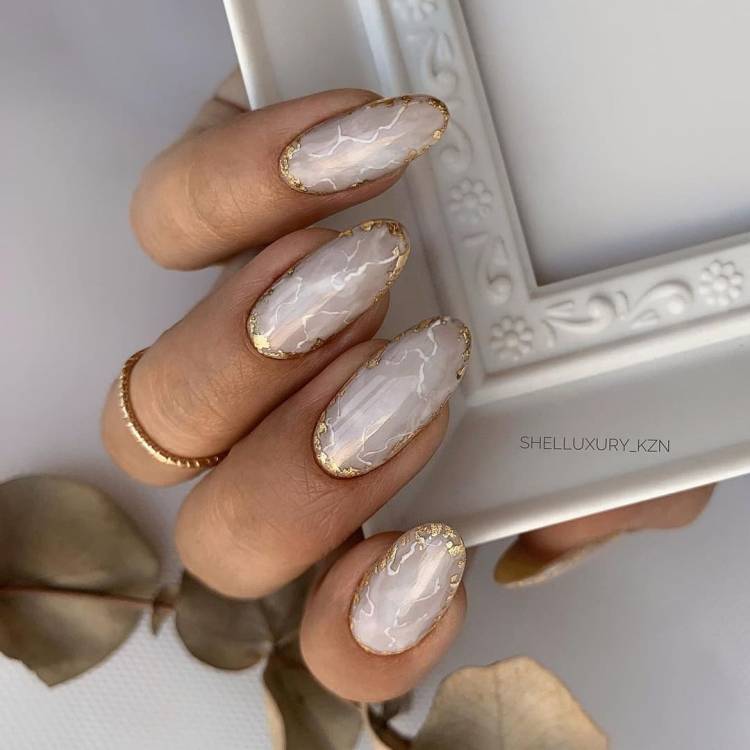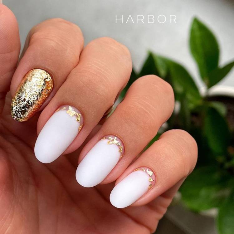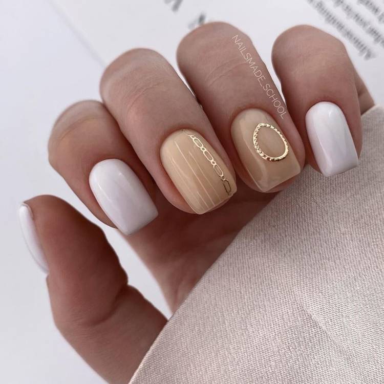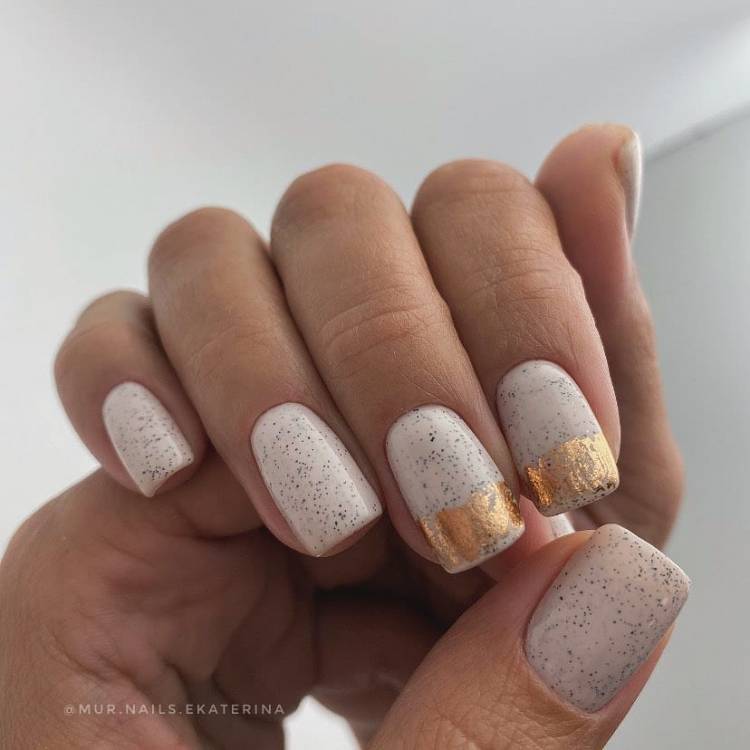 Золоті вставки в ніжний манікюр на осінь