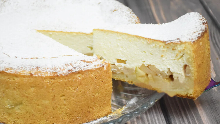 Спробуйте приготувати ось такий сирний пиріг з яблуками. Смачний, начинка являє собою ніжне суфле.
