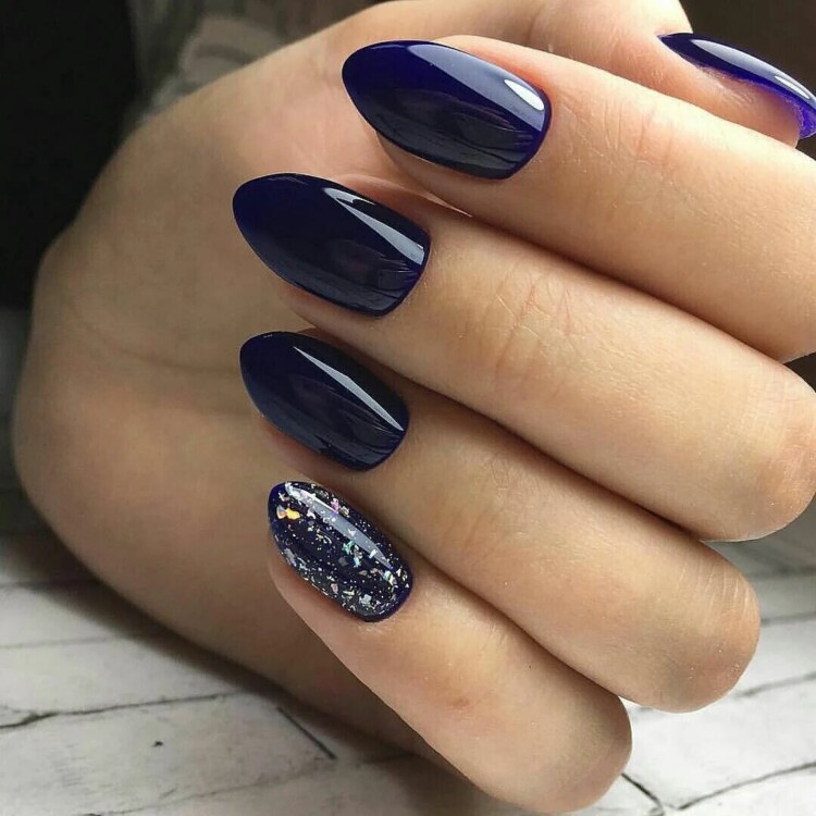 Для більш довгих нігтиків можна створювати цілі шедеври. Палітра відтінків тут не обмежена. Яскраво і ефектно взимку завжди виглядає синій відтінок. Він навіть без елементів декору здатний надати образу ефектності і неповторності. Також варто розглянути френч. Однак, класичний варіант виконання варто залишити в минулому. Є маса цікавих ідей для виконання більш яскраві варіанти виконання.