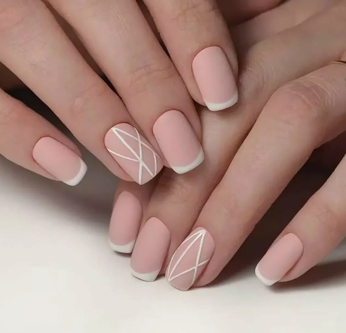Найпростіші варіанти – зигзаги, квадрати та смужки. І хоча на словах це звучить як щось непоказне, насправді дизайн виявляється дуже привабливим. При виборі варто звернути увагу на довжину нігтів. Такі малюнки краще наносити на нігті середньої довжини. Форму можна вибирати будь-яку.
