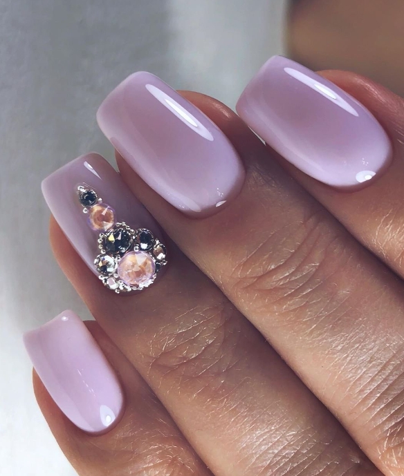 Дуже ніжною буде спілка сірого лаку з дрібним камінням або блискітками. Багато дівчат уникають цього кольору, тому що він здається їм похмурим. Але нейл-майстри кажуть, що цей відтінок у 2022 році буде на піку популярності. Особливо круто він виглядатиме у поєднанні з блакитним.