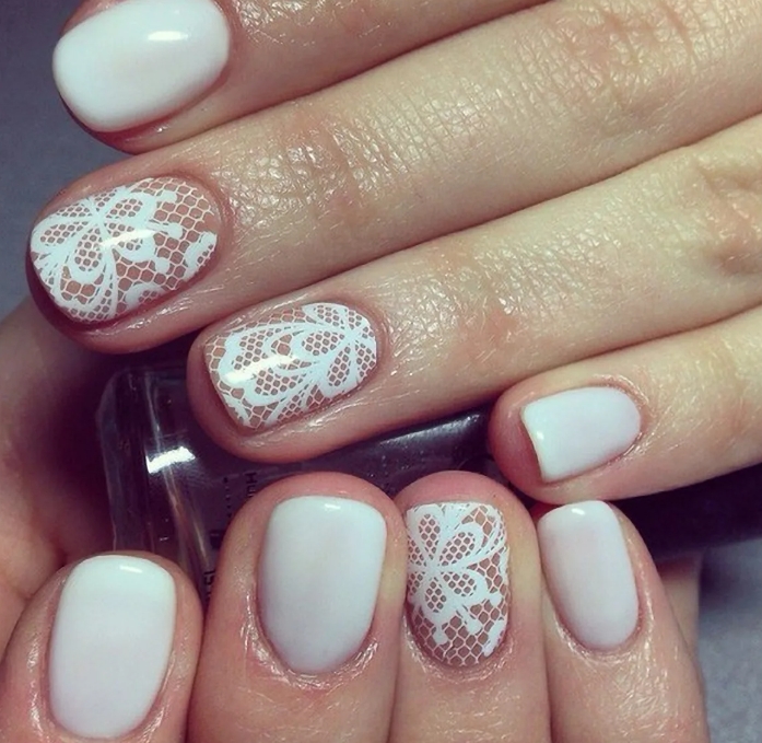 Витончений мереживний манікюр може бути створений у різних стилях. Він виглядає чудово на нігтях будь-якої довжини. Мереживні мотиви завжди актуальні, виглядають дуже ошатно, витіювато і надають якусь вишуканість до загальної картини. Такий хід стане відмінним доповненням до вечірнього вбрання, сукні, блуз і навіть весільної сукні.