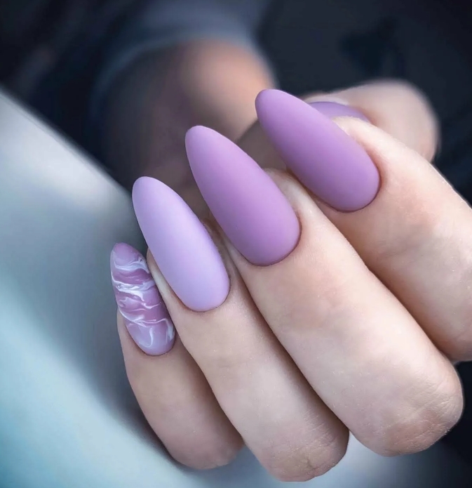 Новомодно і молодіжно виглядатиме тандем із технікою омбре. Спробуйте зробити акцентними середній та безіменний пальці. Для плавних переходів рекомендується використовувати рожевий, абрикосовий, лавандовий, лососевий та пісочний колір. Подібний манікюр підійде як для походу на побачення, так і на кожен день.
