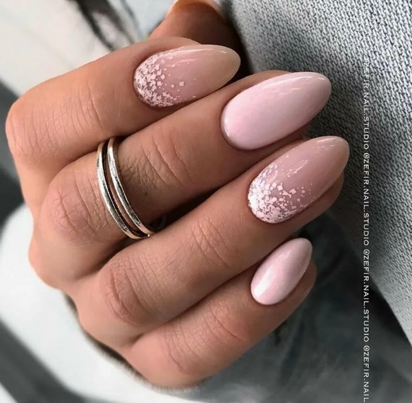 Блискітки на нігтях завжди привертають особливий інтерес оточуючих. Чарівне сяйво миттєво впадає у вічі. Вони здатні перетворити простий дизайн на пишність. Їх можна наносити відразу на всі нігті, манікюр це не зіпсує, він стане тільки ніжнішим і красивішим.