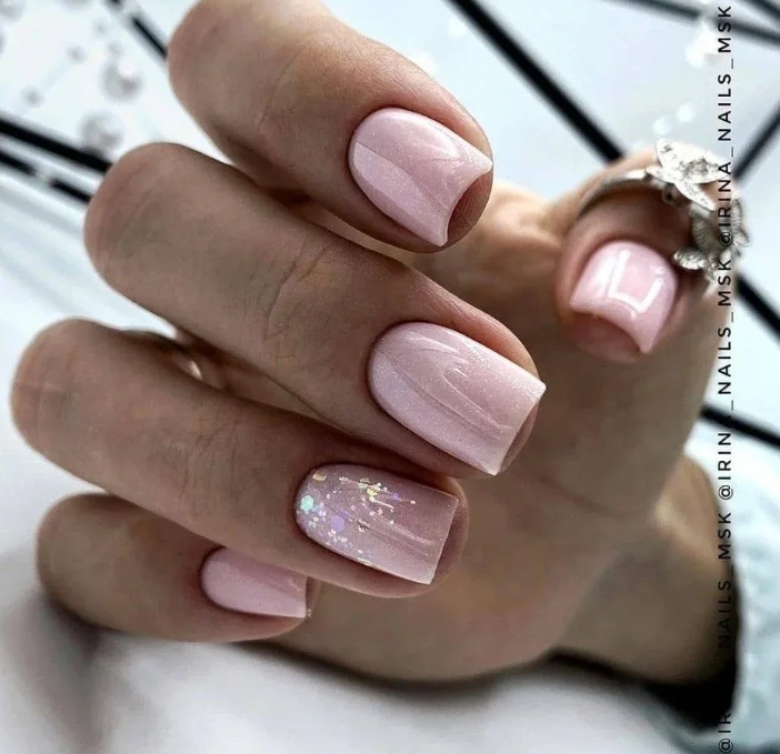 На нігтях він завжди виглядає дуже жіночно та лаконічно. Ідеально підходить для повсякденного життя, тому що не привертає особливої уваги. Але при цьому такий гель-лак робить жіночі руки дуже красивими та доглянутими. Для більш яскравого та святкового образу можна розбавити оформлення нігтів гліттером.