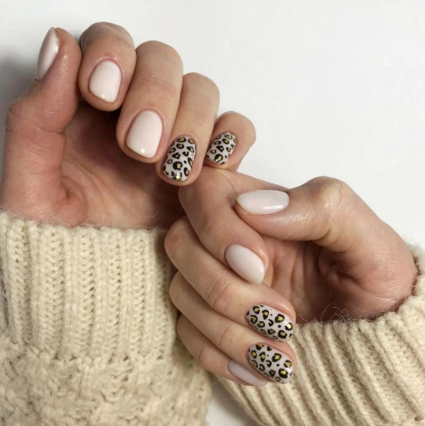 Нейтральні нюдові тони добре поєднуються з візерунками, що нагадують забарвлення зебри, пітона або леопарда. Принт зазвичай наноситься на один або два нігті на руці. Візерунок може займати всю пластину цілком або наноситися у вигляді смужки. Таке поєднання може внести нотку яскравості в базовий спокійний тон.