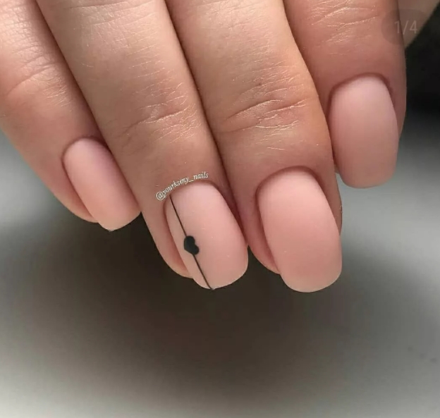 Суворість та природність нюдового манікюру добре поєднуються з принципами мінімалізму, але від цього вибір способів оформлення у майстрів не скорочується. На однотонному тлі можна розмістити стрази, лаконічний малюнок, смужку стрічки, або інший невеликий, але закінчений, яскравий, виразний декор. Вважається, що мінімалістичний манікюр – це спосіб виділитися із натовпу з використанням мінімуму коштів.