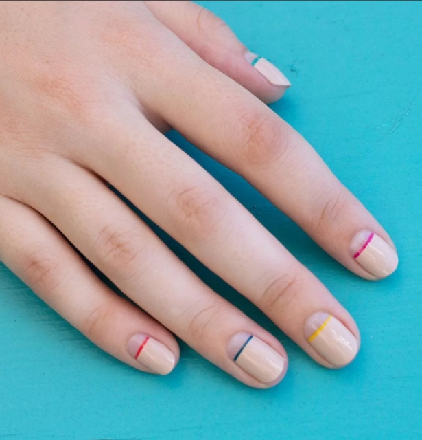 Цей елемент використовують не тільки як основний декор при мінімалізмі, а й у поєднанні з іншими прикрасами (наприклад, блискітками або стразами). Розташування блискучої лінії допомагає візуально скоригувати форму нігтя. Завдяки вертикальним лініям пластина виглядає трохи довшою та вужчою. Горизонтальні смужки трохи розширюють і вкорочують.