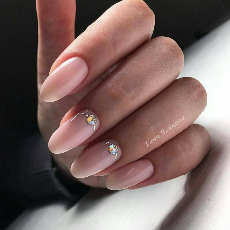 Всі тони прекрасно виглядають як у глянцевому, так і в матовому виконанні. Чудовим доповненням до такого ніжного манікюру стануть стандартні елементи декору у вигляді страз та втірки. Також бездоганно виглядає художній розпис. При нюдовому відтінку весь акцент йде на яскраві елементи манікюру.