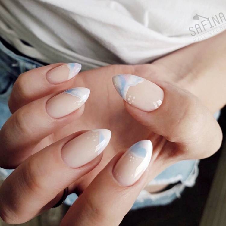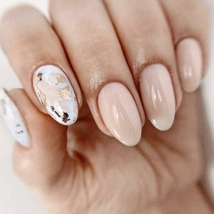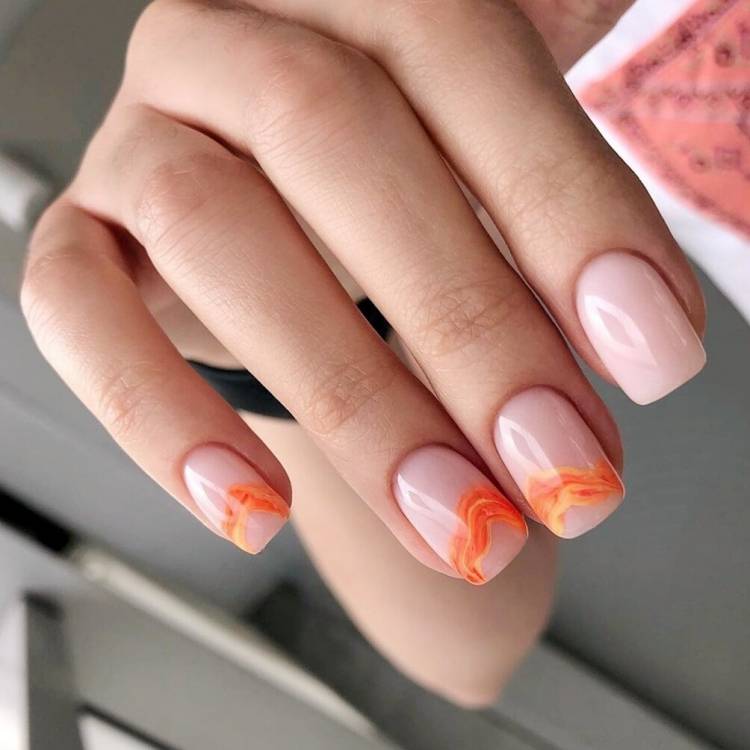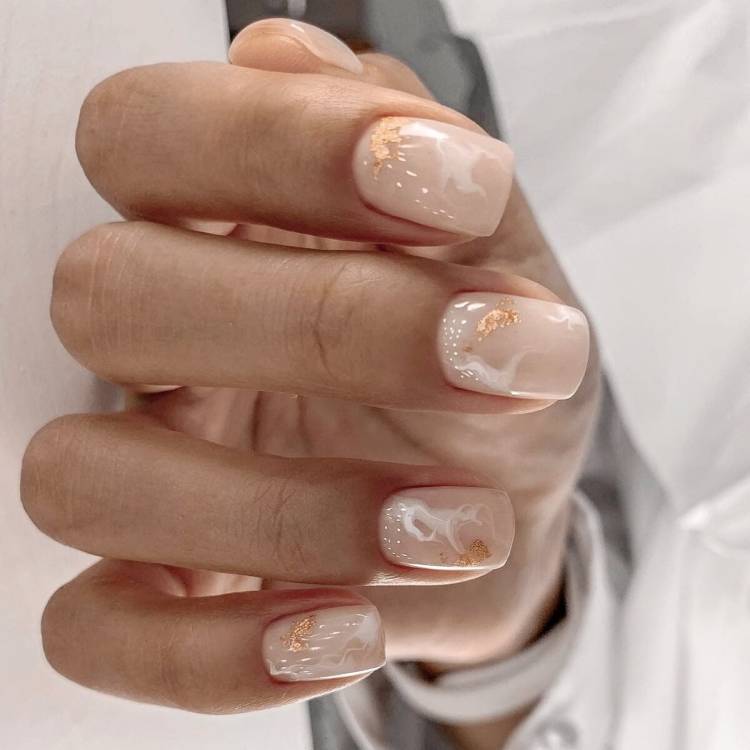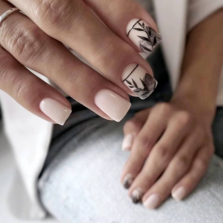 Нюдовий манікюр 2021 відмінно виглядає в тандемі з такими техніками, як абстракція, градієнт, геометрія, графіка і «негативний простір», що грають на контрасті з бежевим покриттям, надаючи модному манікюру в стилі nude родзинку і настрій. Також в новому сезоні знову буде актуальна морська тематика у вигляді хвиль на кінчиках нігтів, мармурові візерунки, чарівні флористичні мотиви, грайливі завитки, екзотичні тварини принти і декоративні елементи – камені, кристали, каміфубукі.
