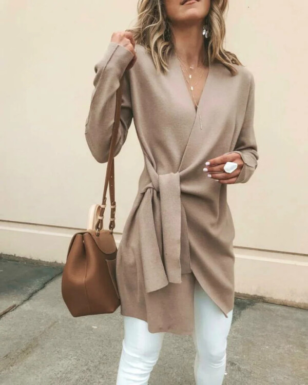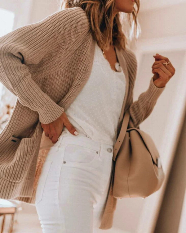Кардиган такої довжини – справжня нев’януча класика. Він абсолютно універсальний і буде гармонійно доповнювати образ юної красуні і суворої жінки у віці. Надати образу більшої витонченості та елегантності дозволять вільний крій кардигана, а також відсутність на ньому застібок.