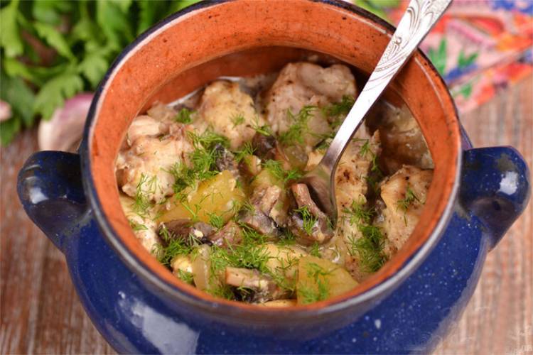 Ця страва має безліч варіантів приготування, покажу один з улюблених. Готувати можна з будь-яким м’ясом та овочами. Просто все нарізаю, викладаємо в горщики та запікаю в духовці. Нічого заздалегідь обсмажувати не треба. Люблю страви в горщиках за простоту в приготуванні (біля плити стояти не треба), аромат і особливий смак.