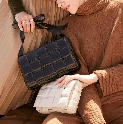 Один з найяскравіших трендів сезону – шкіряні плетені сумки. Як ви знаєте, шкіра – самий-самий головний тренд 2020. При цьому саме плетіння може бути як великим, так і зовсім дрібним. При виборі “своєї” сумки пам’ятайте про вашу фігуру і вибирайте розмір плетіння в залежності від цього.
