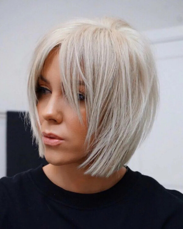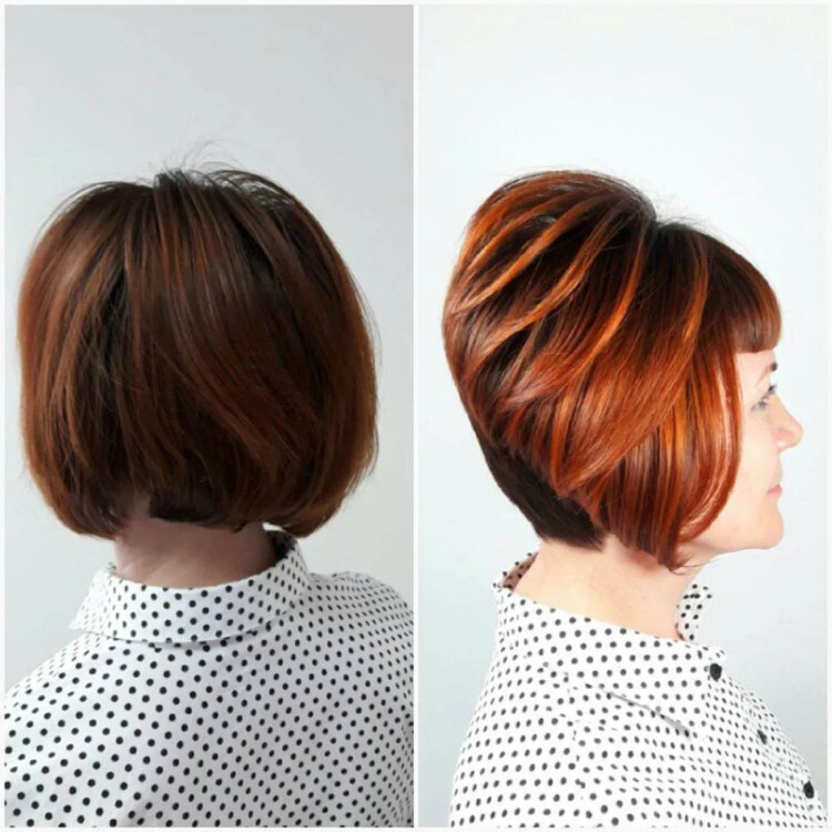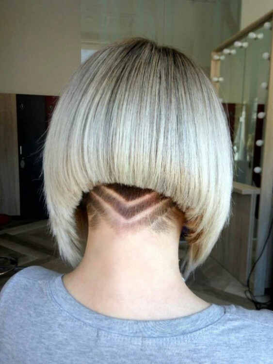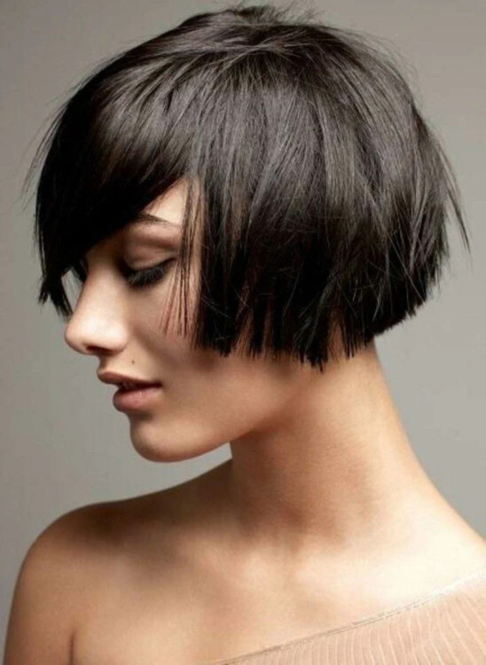 Лідер серед стрижок на коротке волосся. У ній присутні короткі пасма в потиличній частині, які плавно переходять в більш довгі. При бажанні акцентувати увагу саме на стрижці, зріз рекомендується зробити рівним. Він додасть вашому образу цікаві нотки.