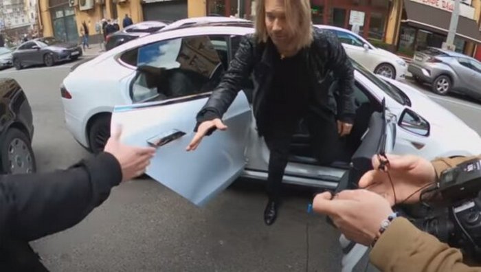 Олег Винник приїхав на зустріч з журналістами в розкішному автомобілі від американського виробника. Артист навіть дозволив кореспонденту посидіти в салоні свого білосніжного електрокара Тesla.