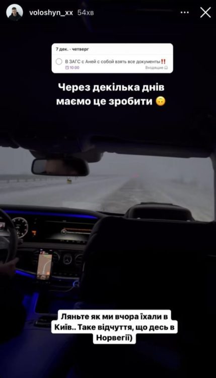 Волошин розмістив скриншот нагадування, в якому йдеться про те, що вони з Анею йдуть у РАЦС сьомого лютого.