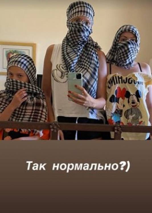 І опублікувала у своєму Інстаграмі фото з доньками – Алісою і Марією. Трійка позує перед дзеркалом, але облич не видно – лише очі. Їхні голови обмотані куфіями – хустками, популярними в арабських країнах.