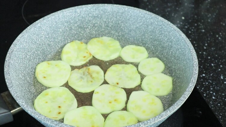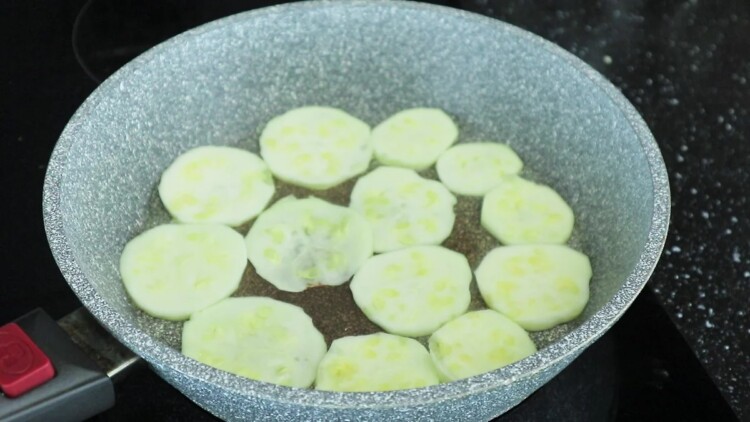 Викладаємо кабачки на розігріту сковороду і трохи солимо.