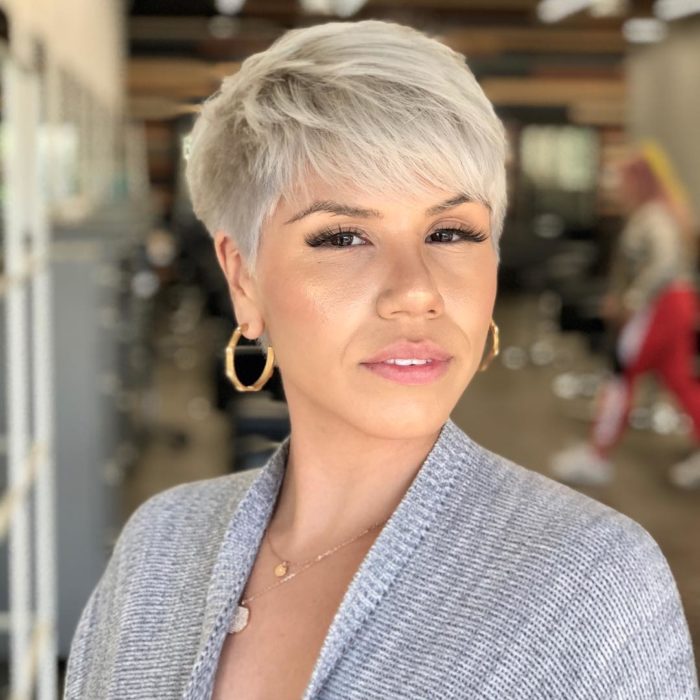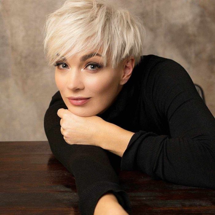 Піксі-стрижка підходить для активних жінок, які не планують витрачати багато часу на укладання волосся. Модну зачіску у 2023 сезоні модно доповнювати подовженим чубчиком – такий штрих приховає зморшки на лобі та зробить погляд привабливим.