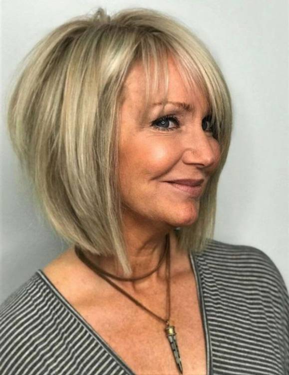 Стилісти підкреслюють, що градуйоване каре для жінок за 50 може чудово виглядати без чубчика або з цим елементом у компанії. Втілення цієї зачіски можливе не тільки на прямому, але і на хвилястому волоссі.