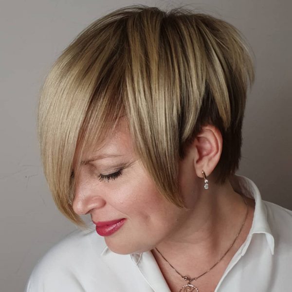 Свіжа та стильна версія легендарної стрижки може бути у її комбінуванні з бобом – це ще один варіант, який може стати справжньою знахідкою для жінки у 50 років. Такий дует давно завоював популярність у сучасних леді, адже формує на шевелюрі привабливий обсяг, додає в образ динаміки та свіжості, а також не засмучує складним доглядом.