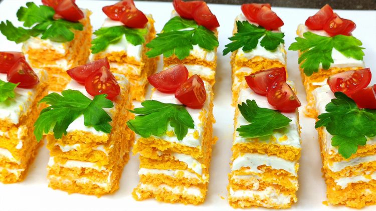 Холодна закуска готується з моркви та сирної начинки.