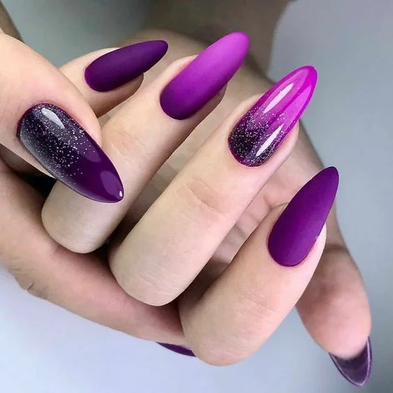 Гарний, насичений відтінок, який багато хто любить. Цієї осені в тренді різні варіанти градієнта пурпурного і фіолетового кольорів.